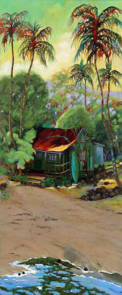 Joe's Beach House, a  commissioned piece, brought back memories of Mr. White’s house. Whenever my  friend and I went to the stretch of beach now occupied by 505 Front Street, we  played Sakura, and Mr. White (who had white hair and lived in a rather dark  beach shack) came out to chat. Still physically fit, he loved his life on the  beach.
