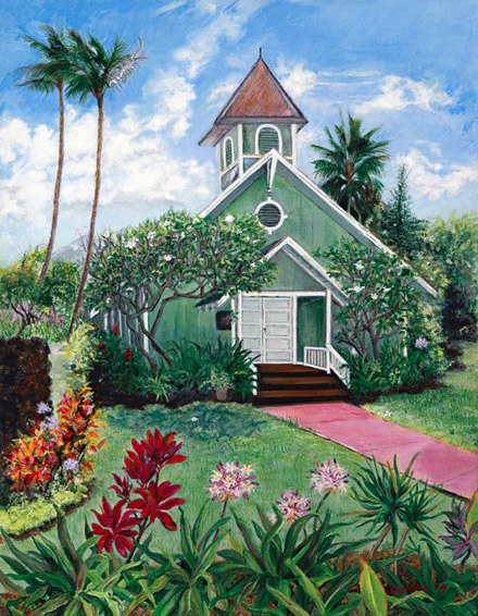 Also called Kaanapali Congregational Church, Lahuiokalani Church, located on the Lower Road in Kahana, was built in 1850, and services  are still held there. What interested me, beside its sweetness, is the perfect harmony  between the local style landscaping and the early building.