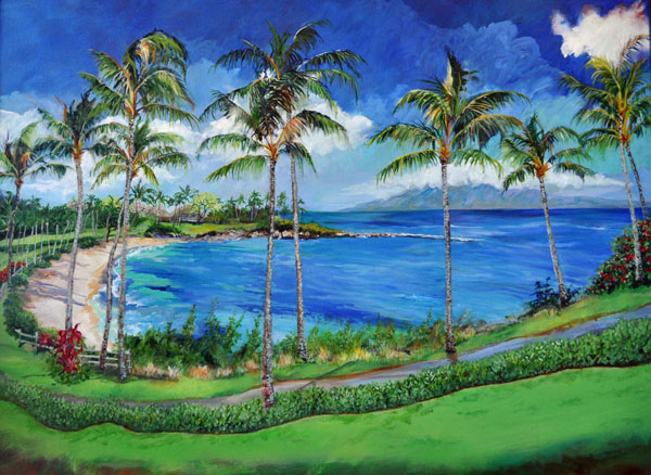A moodier, more intensely colored version of the palms along the walking trail at Kapalua Bay. 30x40
