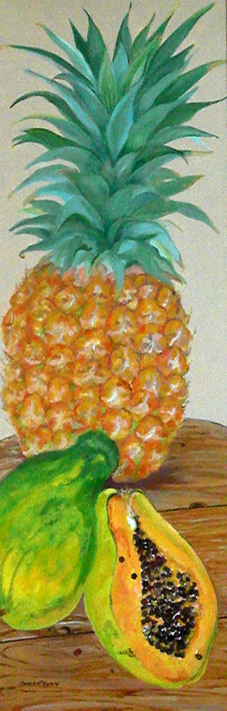 I couldn't decide what to do with this long narrow canvas, and someone gave me a pineapple. Voila. 8x16, Oil on canvas