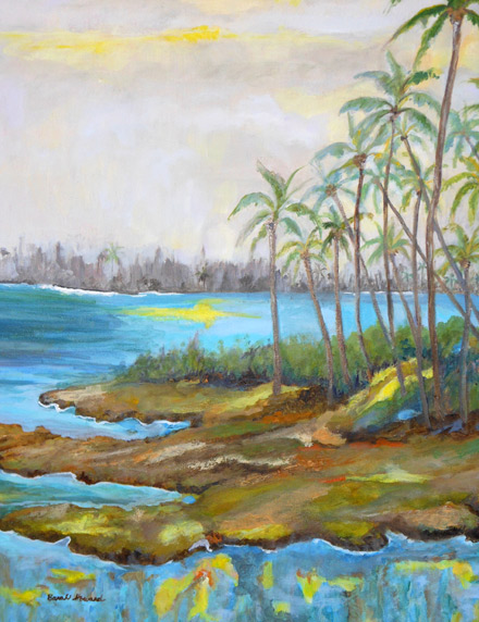 An fun opportunity to try a different palette painting palms. 30x24 Oil on canvas